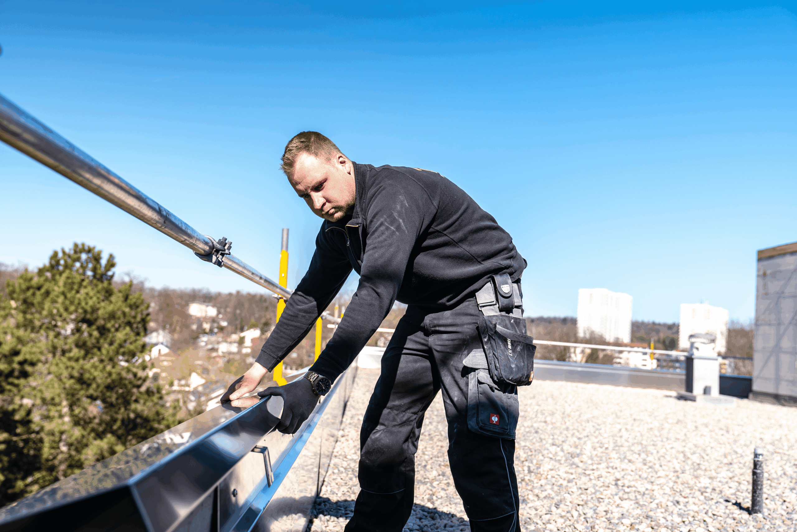 - Montage von Blechteilen für Dächer, Dachrinnen, Regenfallrohre, Schornsteine etc.